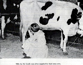 Another log is thrown on the fire and the cold milk from the summer kitchen is brought to the table. The family then says grace and begins to eat. Bread is purchased at a nearby store for ten cents a loaf, and meat is only thirty-nine cents a pound.