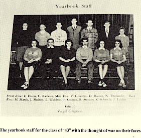 The freshman class of 1943 wasn’t very patriotic compared to the seniors, according to Mrs. Otash. “We didn’t take the war too seriously,” she said. However, the senior class of ‘43 wrote many poems and thoughts about the war, one of which has been reproduced in this issue. These thoughts tell how the seniors really felt.