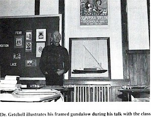 ”I suggest that if you haven’t been down to Strawbery Banke (in Portsmouth) that you go and look at the real gundalow that’s being built there,” Mr. Getchell encouraged us. He added that this model is being built exactly the way the real ones were. In earlier times, farmers used to get together in the winter and build a gundalow for $1500. Today the one at Strawbery Banke is costing $60,000.