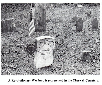 Out of the three, the nicest was the Cheswell Cemetery, off Main Street. It has an iron gate with the name “Cheswell” in an arch on it. A veteran of the Revolutionary War is buried there.