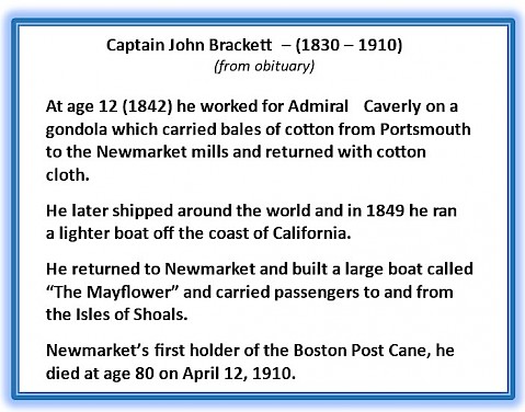 Captain Lemuel H. Drew (1803-1879) of Newmarket was a noted packet skipper “in the days when most of the traffic between Dover, Durham, Newmarket, Exeter and other upriver towns was carried on by water.” His son William’s obituary in 1897 (reprinted in the Newmarket Advertiser from the Boston Globe) mentions his father and includes a detailed description of the boats and the men that sailed them: