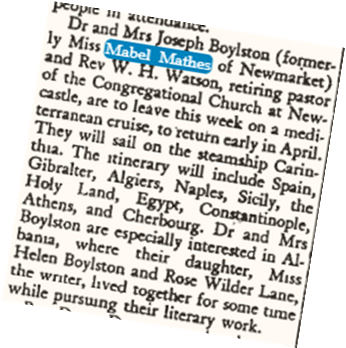 He was a perfect match for Mabel with a background in education, and a rich knowledge of world history. The couple went on extensive travel excursions to various parts of the world. One such trip was in Jan 1930 when they took on a three-month extended vacation touring Europe. As their guest, they took retired Rev. William Watson of the New Castle Congregational Church who was also a lodger in their home.
