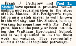 In 1881 he attended Pine Hill School with perfect attendance while also working in his father’s store. He went on to attend the Waltham Horological school, as the accompanying article printed in 1884 mentions. He was active in the Newmarket local chapter of Odd Fellows and was elected to several office positions.